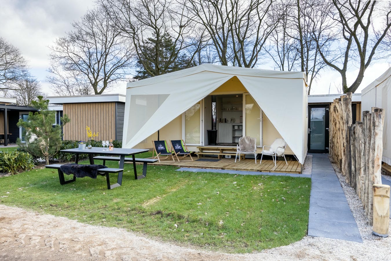 Luxe kamperen kan ook op Familiepark TOP Totaal Vredeoord! We hebben namelijk een aantal prachtige, volledig ingerichte safaritenten beschikbaar. Gewoon slapen in een echt bed, met een eigen keukentje en privé-sanitair. De sfeervolle safaritent is de ideale combinatie tussen gezellig kamperen in de natuur en relaxed genieten van privacy en comfort.