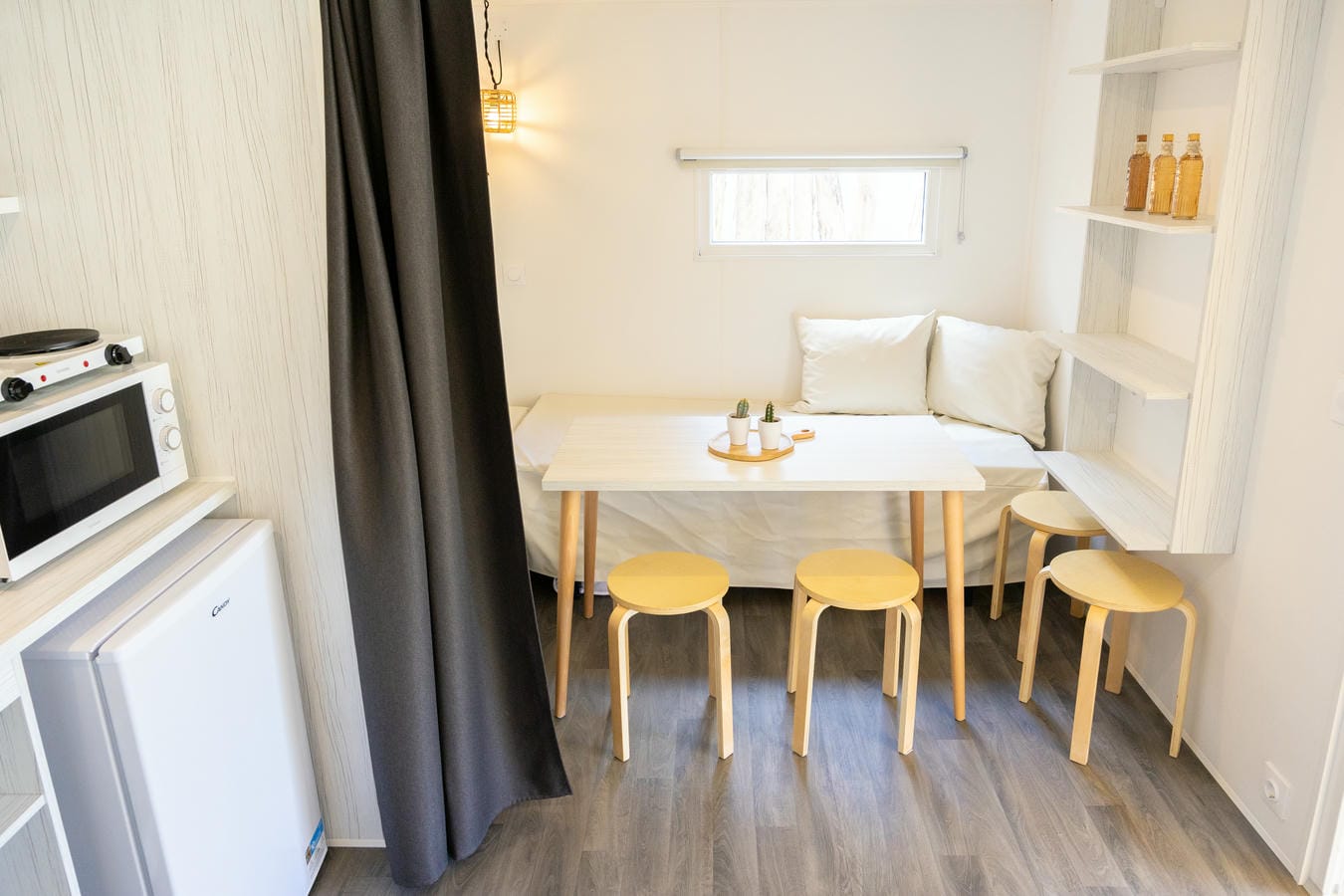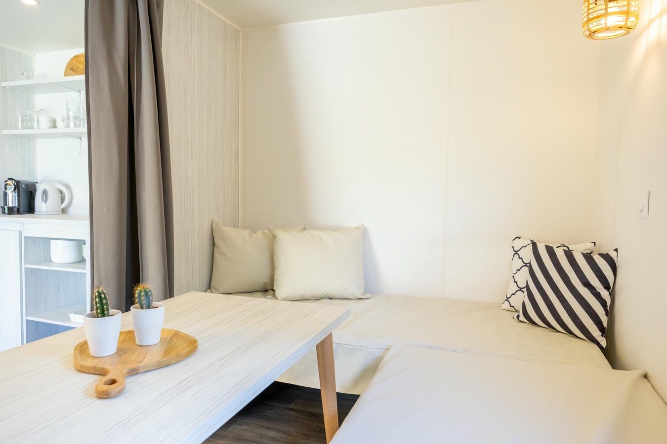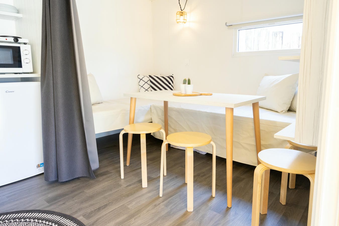 De safaritent beschikt over 1 aparte slaapkamer met 2 bedden. In het zitgedeelte kunnen ook nog 2 slaapplaatsen gerealiseerd worden. Daarnaast is er een gezellig terras om tot in de late uurtjes buiten te kunnen zitten. Ook voor beddengoed en kussens is gezorgd. We kunnen zelfs de bedden alvast opmaken. U hoeft alleen nog maar uw koffer uit te pakken en het genieten kan beginnen!